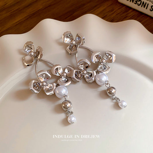 Silver Water Drop Flower Pearl Tassel Eardrops Women's Accessible Luxury Fancy Elegant Earrings 2025 New Arrival Best Selling Earrings